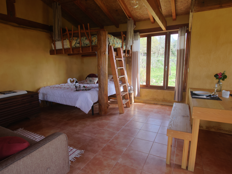 A Casa Gaio está equipada com kitchenete e casa de banho e pode acomodar até 5 pessoas em 2 camas de casal e 1 sofá-cama. A casa fica mesmo em frente ao nosso lago. Durante a noite, pode ouvir uma sinfonia de rãs e, durante o dia, observá-las a saltar sobre as folhas de nenúfar. Há acesso direto e estacionamento para o seu carro. A Casa Gaio oferece privacidade e independência.