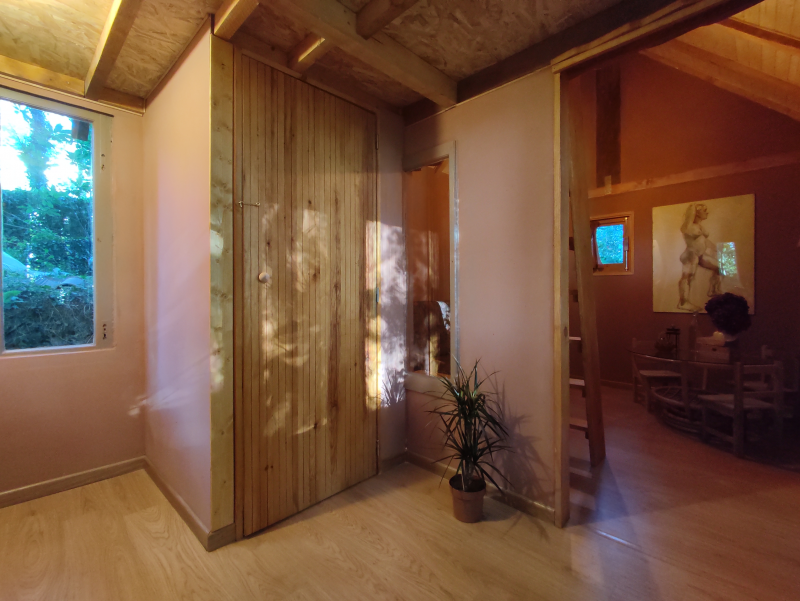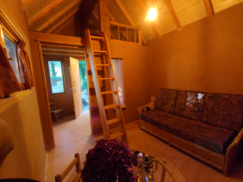 A casa em madeira, Mocho, é um pouco maior do que as eco-casas e pode acomodar famílias de até 3 membros. Dispõe de casa de banho com sanita e lava-louças no interior. Nesta casa, irá dormir num mezanino artesanal. Não se irão aborrecer, com muito para explorar, como o nosso lago, agrofloresta, bosque e a área dos animais com ovelhas, gansos, galinhas, patos, pavões e galinhas-da-índia.